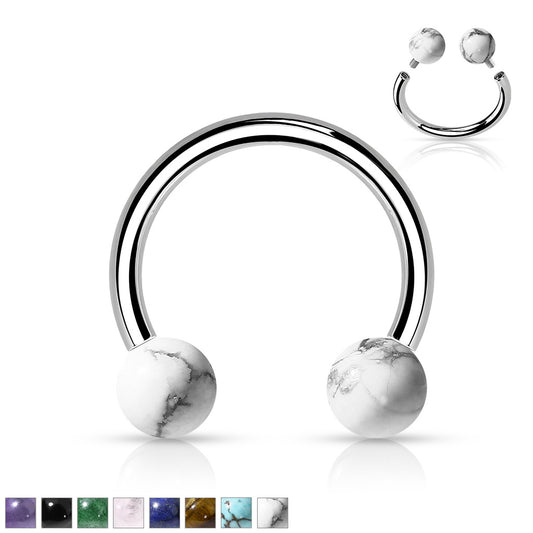 1pc Semi Precious Stone Circular Barbell Horseshoe Lip Ear Septum Ring 16g 3/8"