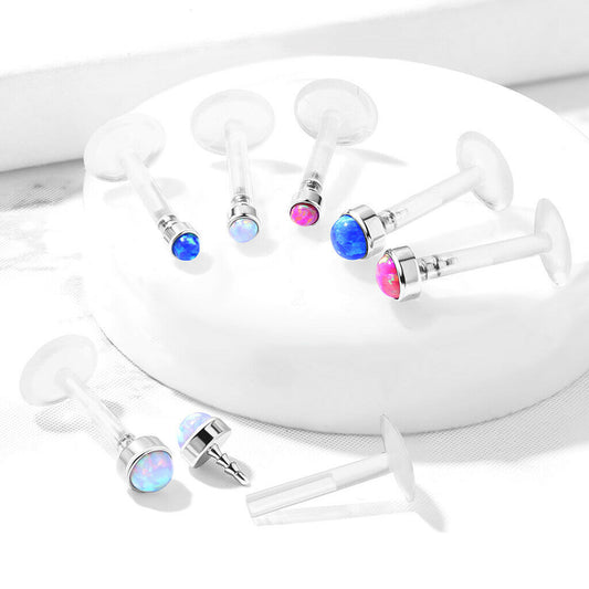 1pc Bioflex Opal Stone Labret Monroe Tragus Push-in Ear Cartilage Stud Bio Flex