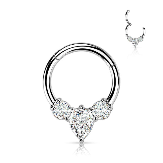 1pc Pear CZ Gem Hinged Segment Ring 16g Septum Clicker 316L Surgical Steel