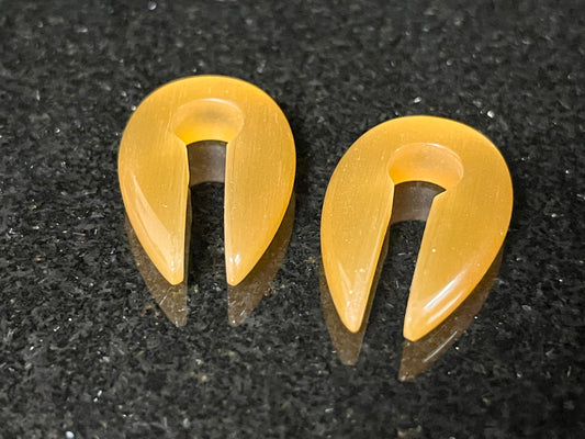 PAIR Yellow Cat Eye Keyhole Hanger Ear Weight Plug Gauge Tunnel Stone Gauges