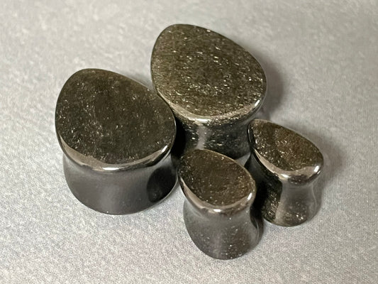 PAIR Teardrop Gold Obsidian Stone Plugs Tear Drop Ear Piercing Earlets Gauges