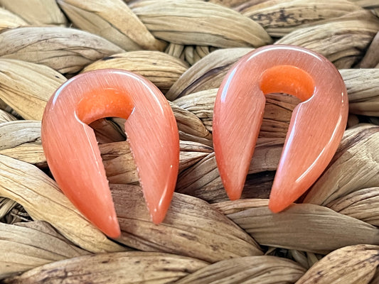PAIR Red Orange Cat Eye Keyhole Hanger Ear Weight Plug Gauge Tunnel Stone Gauges