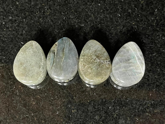 PAIR Tear Drop Labradorite Natural Stone Double Flare Plugs Organic Gauges