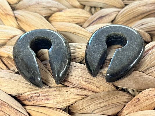 PAIR Gold Obsidian Keyhole Hanger Ear Weight Plug Gauge Tunnel Stone Gauges