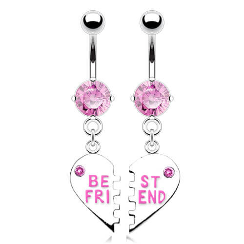 2pc Set of Best Friends Heart CZ Gem Belly Ring Set Pair Navel Piercing Naval