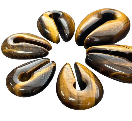 PAIR Tiger Eye Stone Keyhole Hanger Ear Weight Plug Gauge Tunnel Stone