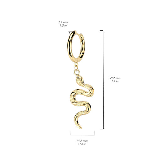 PAIR Dangling Snake Hoop Earrings 316L Stainless Steel Hinge Action 20g