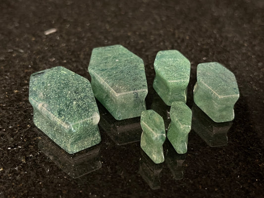 PAIR Mossy Glass Stone Double Flare Coffin Shaped Plugs Gauges Body Jewelry