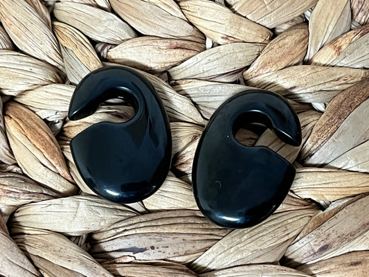 PAIR Black Obsidian Oval Keyhole Hanger Ear Weight Plug Gauges Tunnels Stone