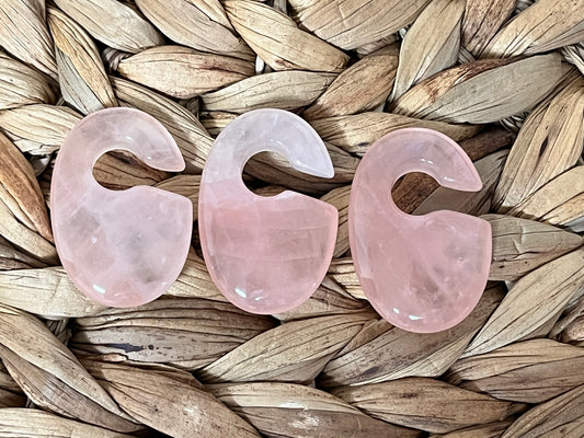 PAIR Rose Quartz Oval Keyhole Hanger Ear Weight Plug Gauges Tunnels Stone