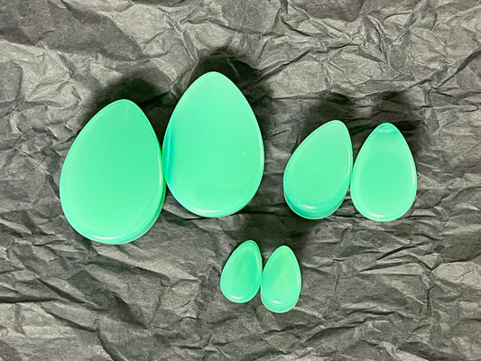 PAIR Green Opalite Teardrop Plugs Double Flare Saddle Tunnel Tear Drop Gauges