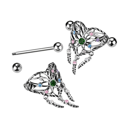 PAIR Dream Catcher Shield Nipple Rings Surgical Steel Barbells Body Jewelry