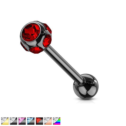 1pc Multiple Gem Set Ball Tongue Ring IP Steel Barbell Tounge 14g 5/8 (16mm)