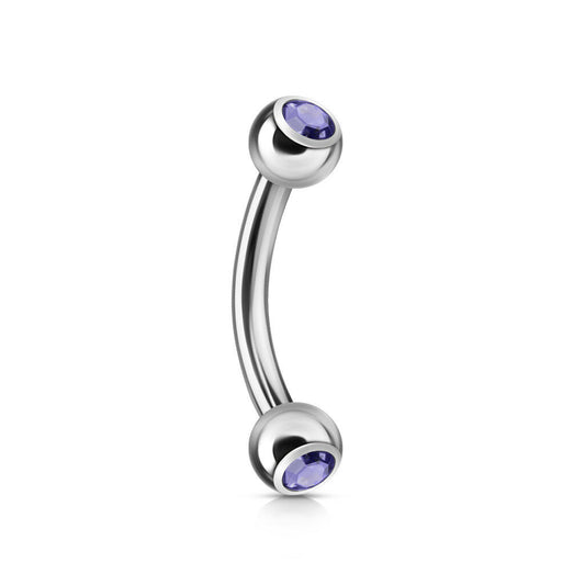 1pc Double Press-Fit CZ Gem Curved Barbell Eyebrow Ring, 14g or 16g