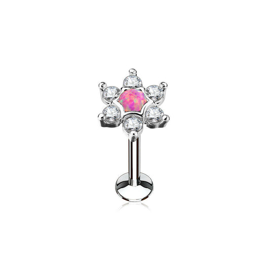 1pc Opal Center Flower 16g Internally Threaded 1/4" or 5/16" Steel Labret Monroe