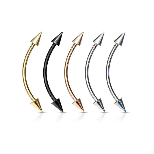1pc Snake Eye Piercing Curved Barbell Tongue or Eyebrow Ring PVD Plated Spikes