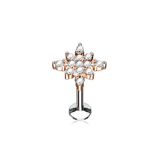 1pc CZ Gem Starburst 16g Internally Threaded 1/4" or 5/16" Steel Labret Monroe