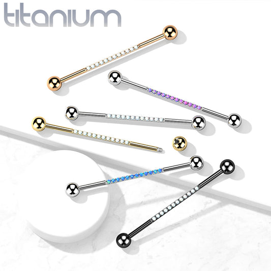 1pc CNC Set Lined Opals Industrial Barbell Implant Grade Titanium 38mm 1.5"