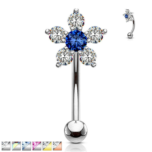 1pc Eyebrow Ring w/ Double Tier CZ Gem Flower 16g Curved Barbell 16 Gauge