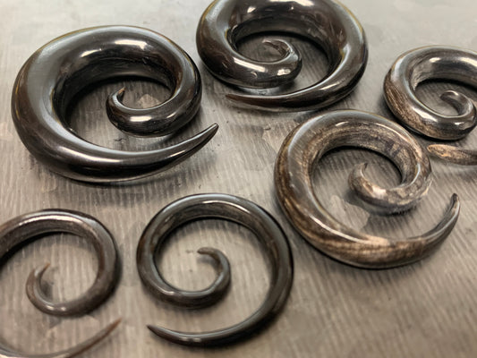 PAIR Organic Horn Spiral Tapers with Tail Plugs Tunnels Gauges Body Jewelry