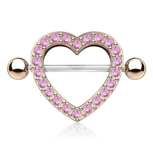 PAIR Gem Paved Heart Nipple Shields Rings Body Jewelry