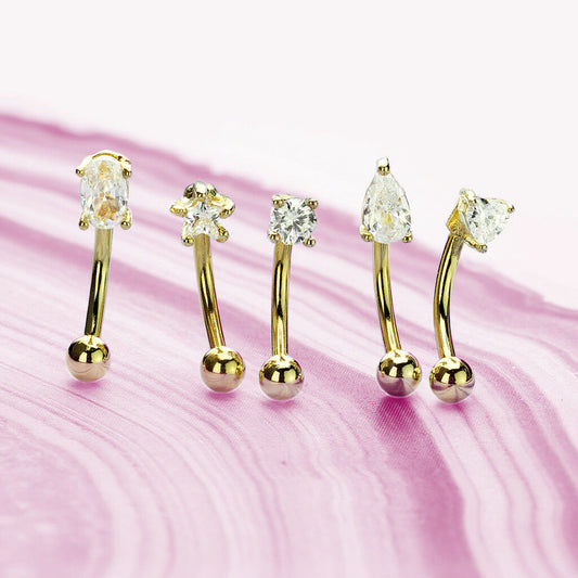5pc Value Pack Prong Set CZ Gem Shapes Eyebrow Rings Curved Barbells 316L Steel