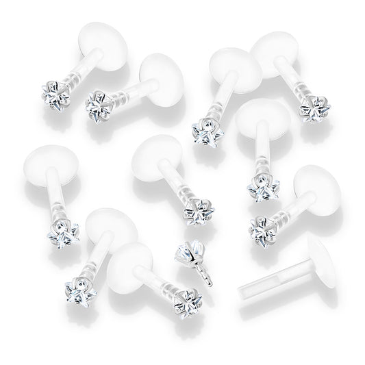10pc Star CZ Gem Bioflex Labrets 16g Bio-flex Monroes Wholesale Body Jewelry