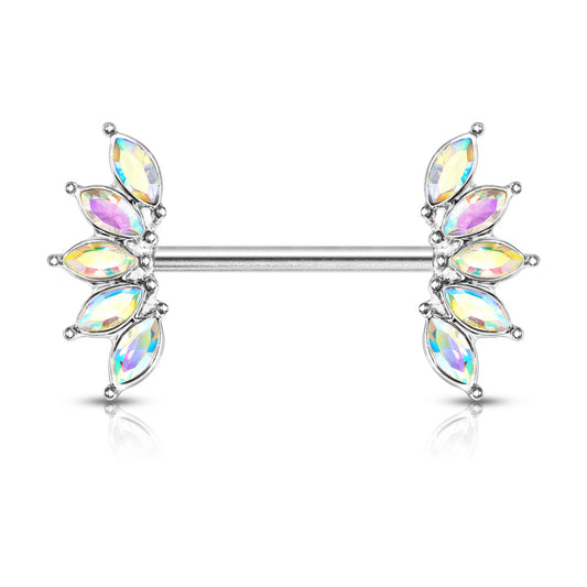 PAIR Marquise Crystal Gem Fans Nipple Rings Shield Steel Barbells Surgical Steel