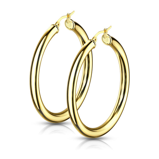PAIR Thick Hollow Hoop Earrings 316L Stainless Steel 20g