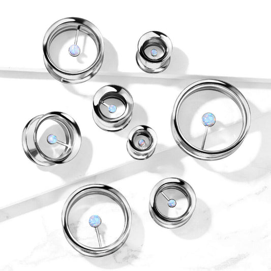 PAIR Floating Opal Internally Threaded Tunnels Plugs 316L Surgical Steel