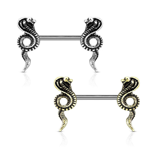 PAIR Antique Gold or Silver Cobra Snake Nipple Rings Shields Steel Barbells