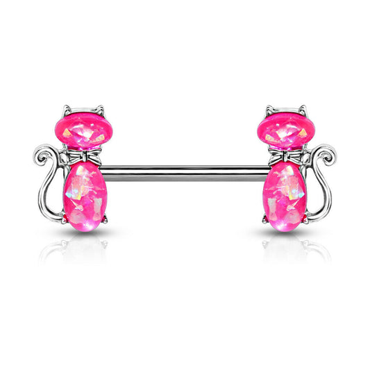 PAIR Opal Glitter Cat Nipple Rings Kitty Shields 316L Surgical Steel Barbells