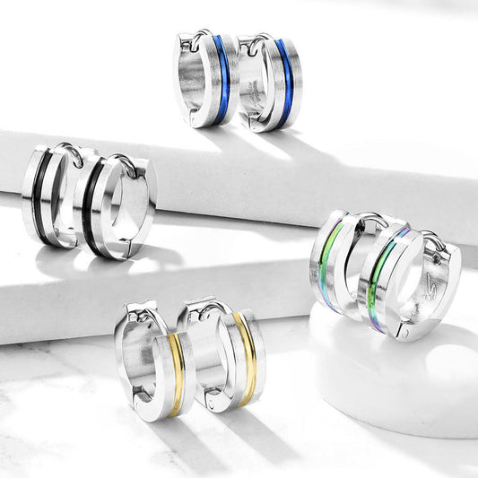 PAIR Small Hoop Huggie Earrings PVD Color Stripe Stainless Steel 20g Men / Women