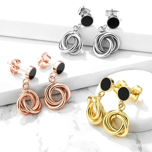PAIR Stud Earrings Intertwined Circle Hoops IP Stainless Steel 20g