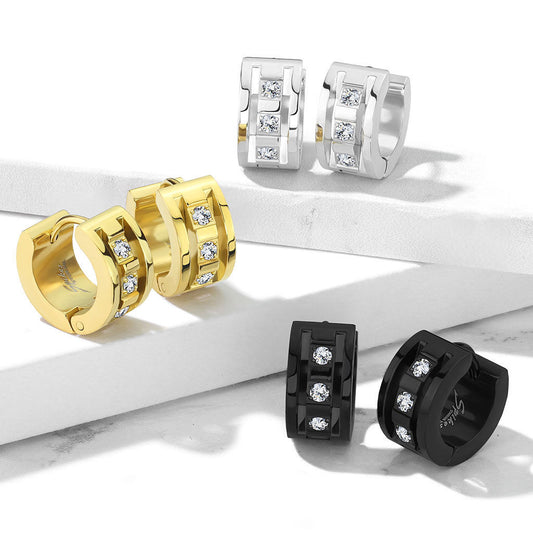 PAIR of Hoop Hinged Huggie Earrings 3 CNC Set CZ Gems