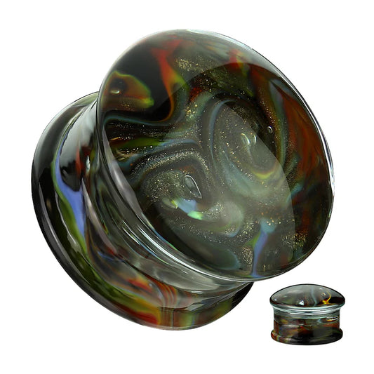 PAIR Rainbow Sparkle Swirls Design Pyrex Glass Plugs Gauges Body Jewelry