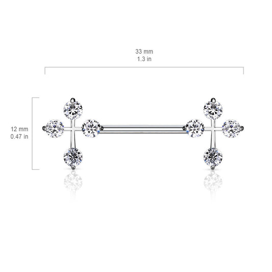 PAIR CZ Gem Cross Ends Nipple Rings Shields