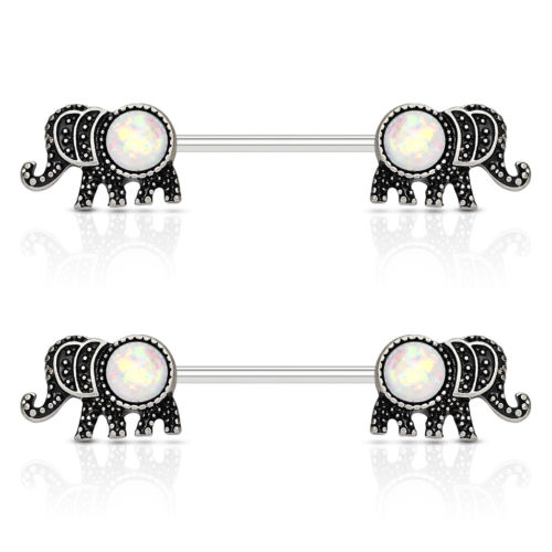 PAIR Opal Glitter Elephant Nipple Rings Shields - Just White Opal Available