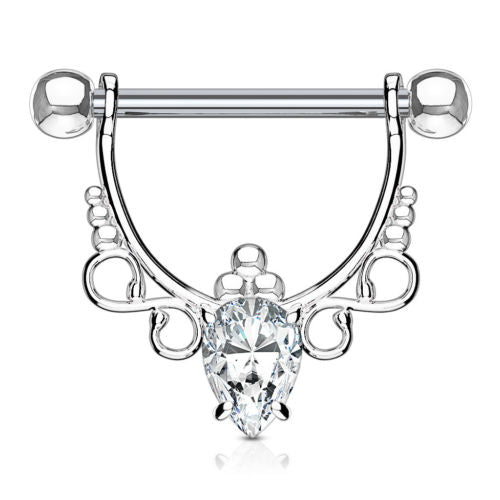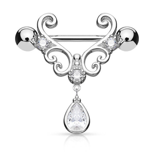 PAIR Pear Gem Filigree Dangle Nipple Rings Shields