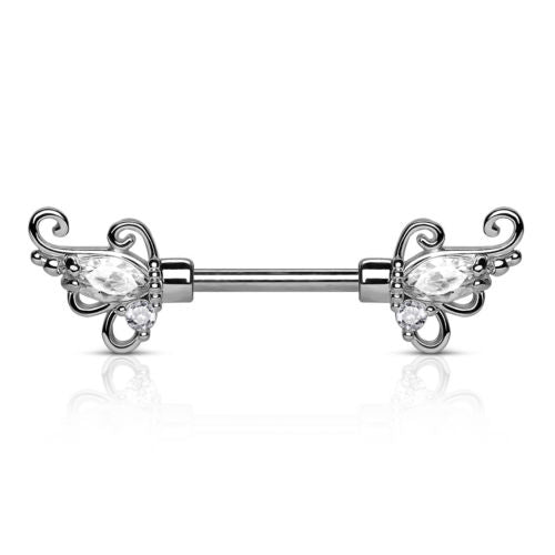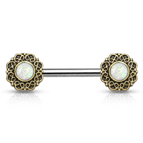 PAIR CZ Set Floral Filigree Ends Nipple Rings Shields