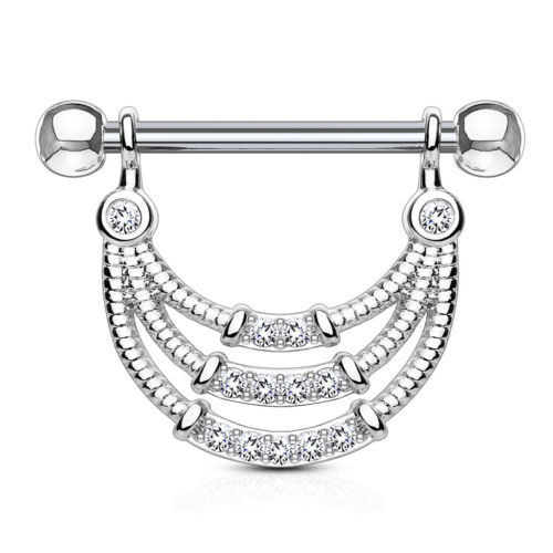 PAIR Triple Lined Gem Dangle Nipple Rings Shields