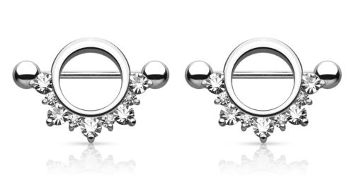 PAIR Half Circle CZ Gem Lined Nipple Shields Rings