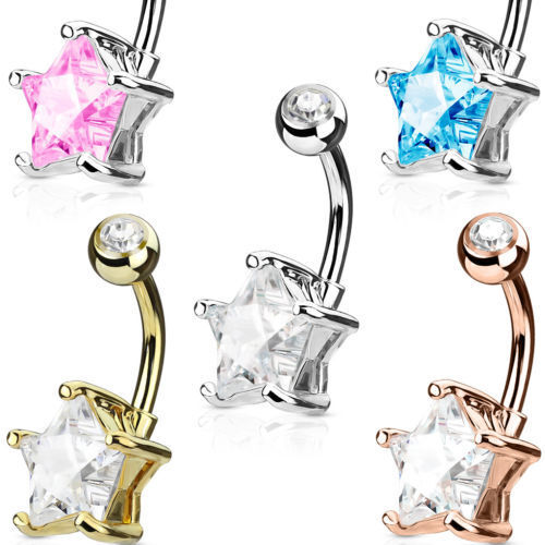 1pc Double Gemmed Star CZ Gem Prong Set Solitaire Belly Ring Navel Naval
