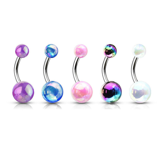 5pc Value Pack Metallic AB Coated Belly Rings 14g Navel Naval Body Jewelry