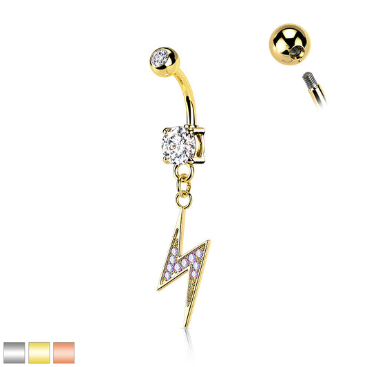 1pc CZ Gem Paved Lightning Bolt Surgical Steel Belly Ring Navel Naval