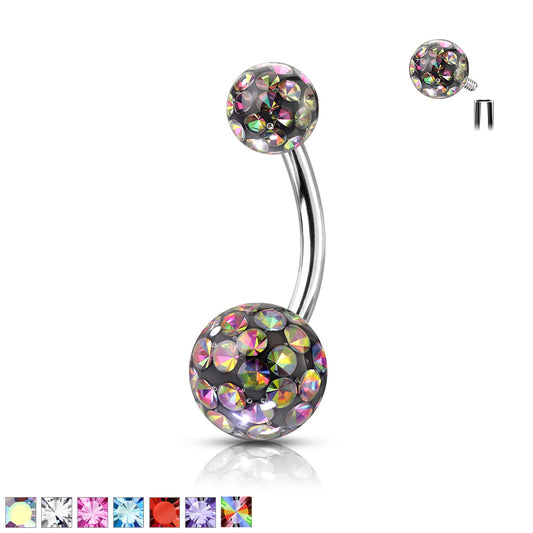 1pc Epoxy Coated Crystal Paved Balls Belly Ring Naval Navel Internally Threaded
