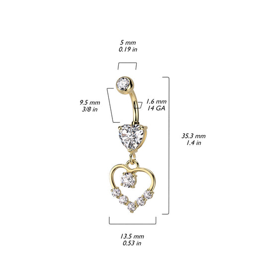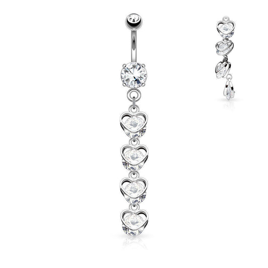 1pc Four Vertical Drop CZ Set Hearts Belly Ring Navel Naval