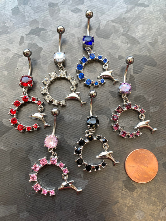 6pcs Dolphin Gem Dangle Navel Rings Belly Naval