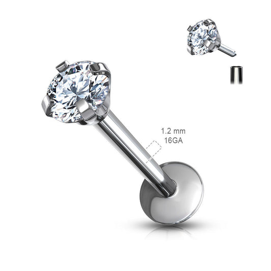 10pcs Clear Prong Set CZ Gem 16g Internally Threaded Labrets