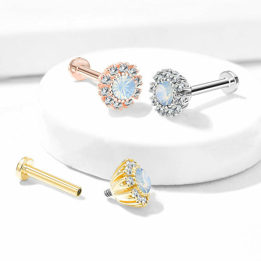 1pc Opalite Gem Flower 16g Labret Internally Threaded Steel Monroe Tragus Helix